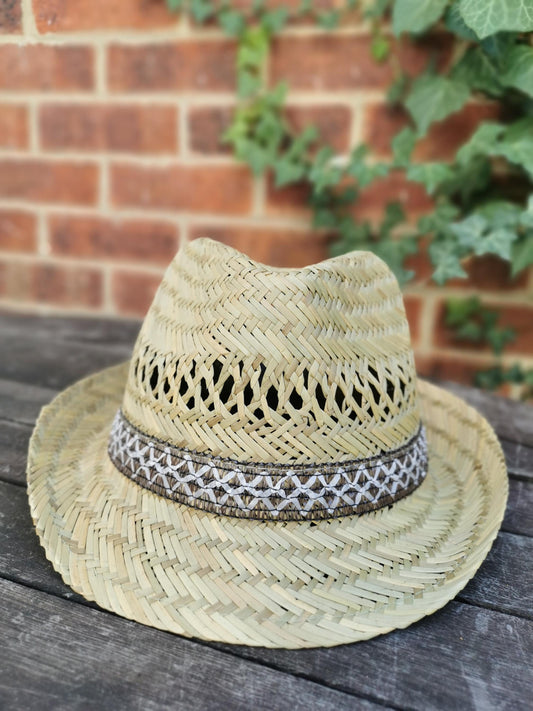 Classic Men's Straw Trilby Fedora Hat - Lightweight Summer Beach Sun Protection Panama Style Fashion Accessory