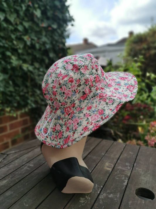 Ladies Wide Brim Summer Hat Flower Floral Print Sun Hat Gardening